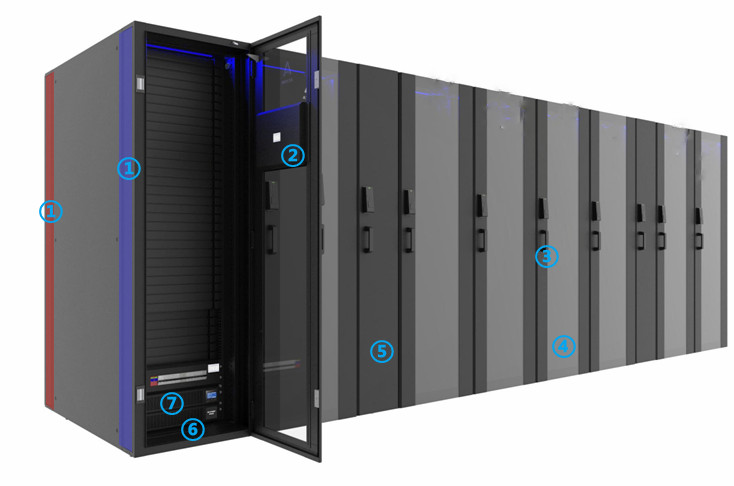 (1)封闭通道系统:独立的冷/热封闭通道分别集成在机柜的前部和后部。