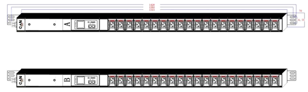 0U PDU(参考图) 技术参数及规格:0U安装,AC220V32A输入,16个国标三扁10A输出,2个国标三扁16A输出;
