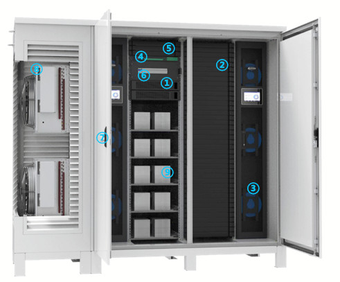 创新的户外柜数据中心解决方案,可支持1~3个机柜位,整机IP55防护,兼具优异的隔热特性。柜内集成机架、UPS供配电、制冷、监控、安防等关键IT基础设施,标配室外机安装位,全预制化设计,现场即插即用。